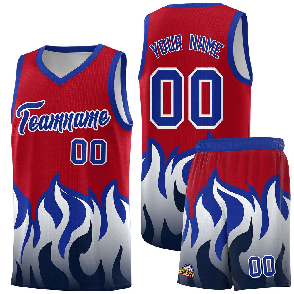 Custom Red Royal Hem Flame Pattern Fashion Sports Uniform Basketball jersey