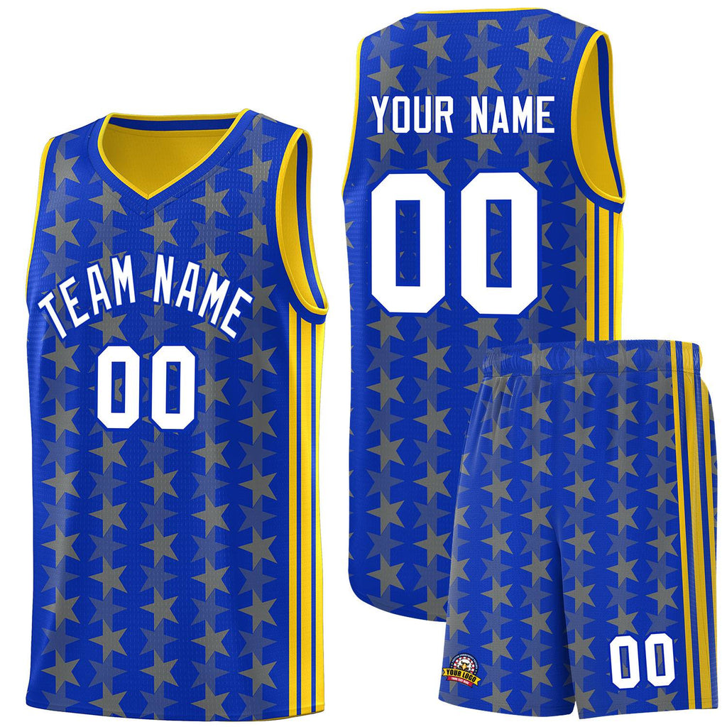 Custom Royal Gold Star Graffiti Pattern Sets Sports Uniform Basketball Jersey