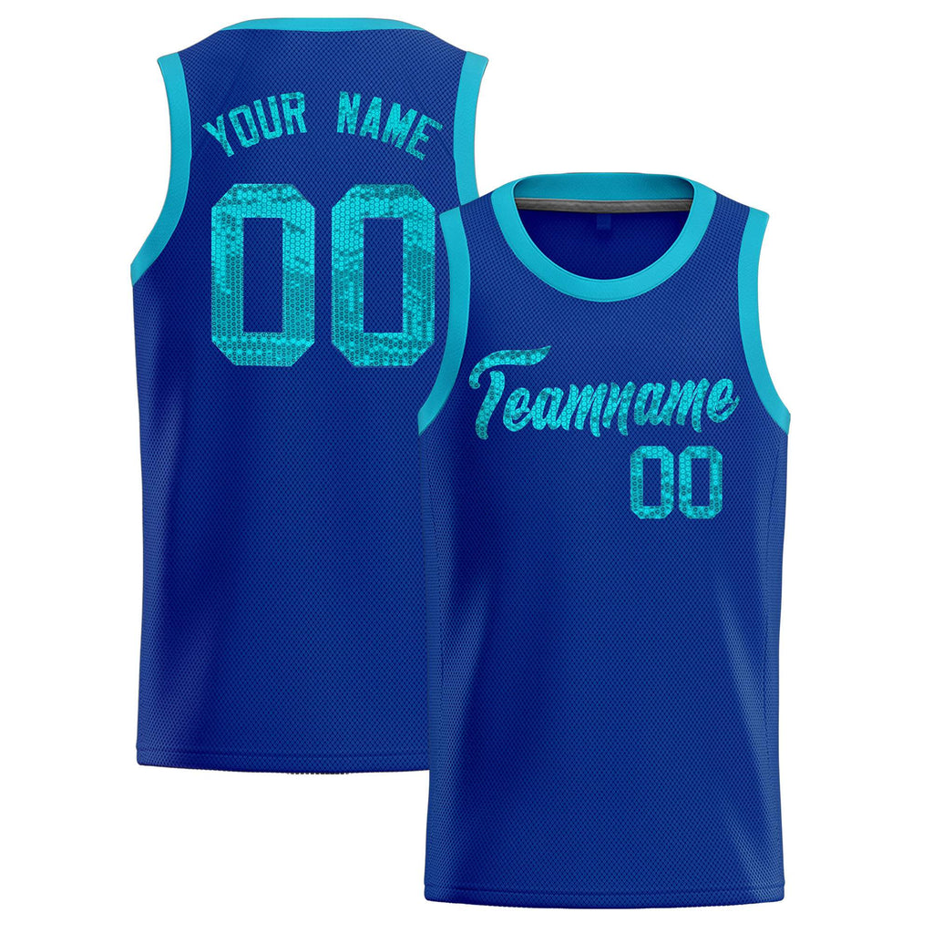 Custom Royal Sequined Tops Athletic Basketball Jersey