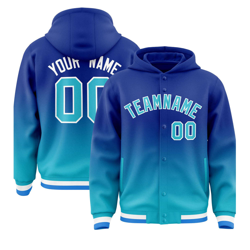 Custom Royal Sky Blue Varsity Full-Snap Letterman Gradient Jacket Hoodie