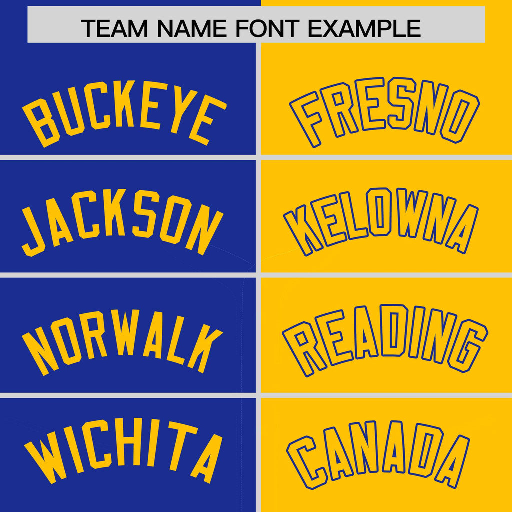 Custom Royal Yellow Split Fashion Coconut Tree Design Authentic Baseball Jersey