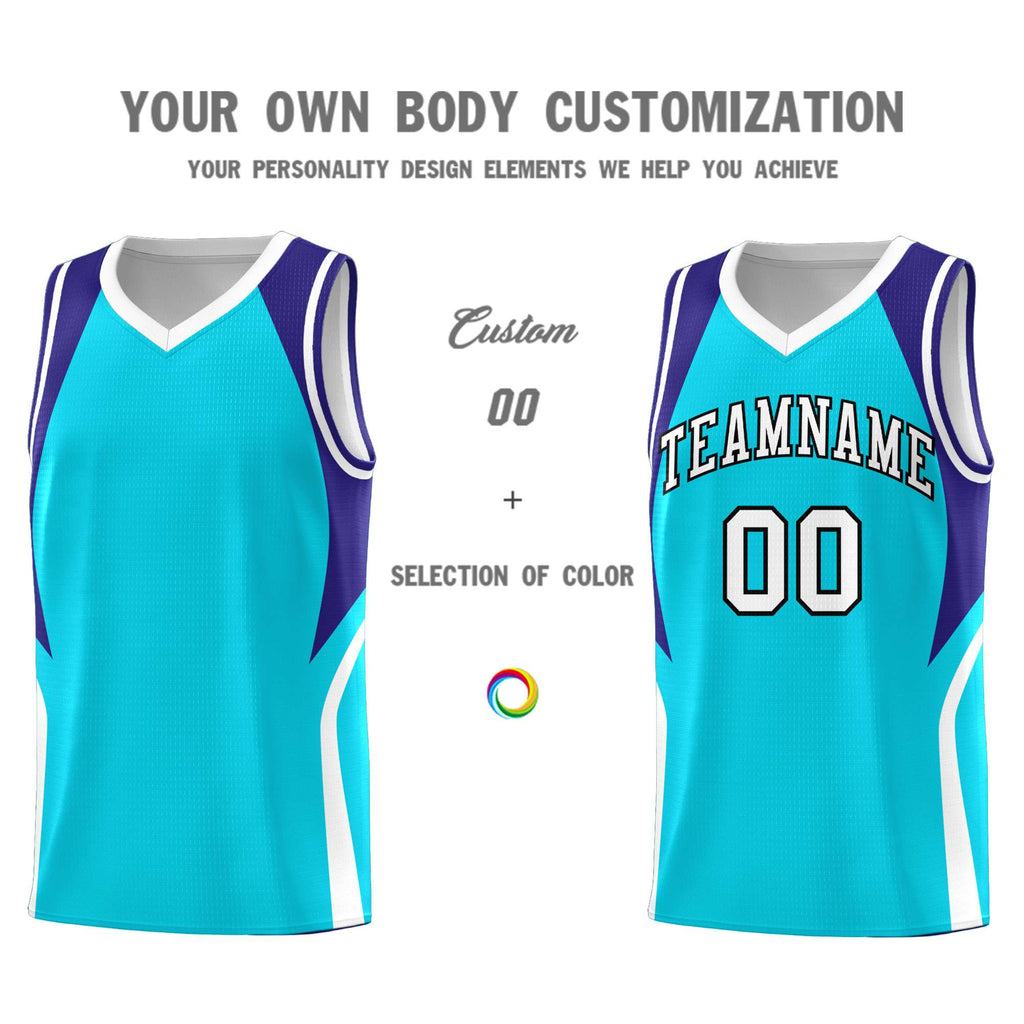 Custom Sky Blue Royal and White Color Block Sports Uniform Basketball Jersey
