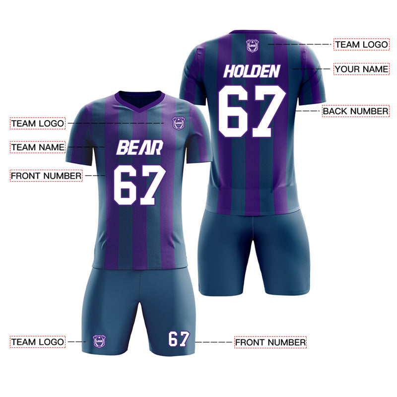 Custom Soccer Jersey Sets Player Tracksuit Outdoor Train Stripes Soft Uniform