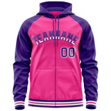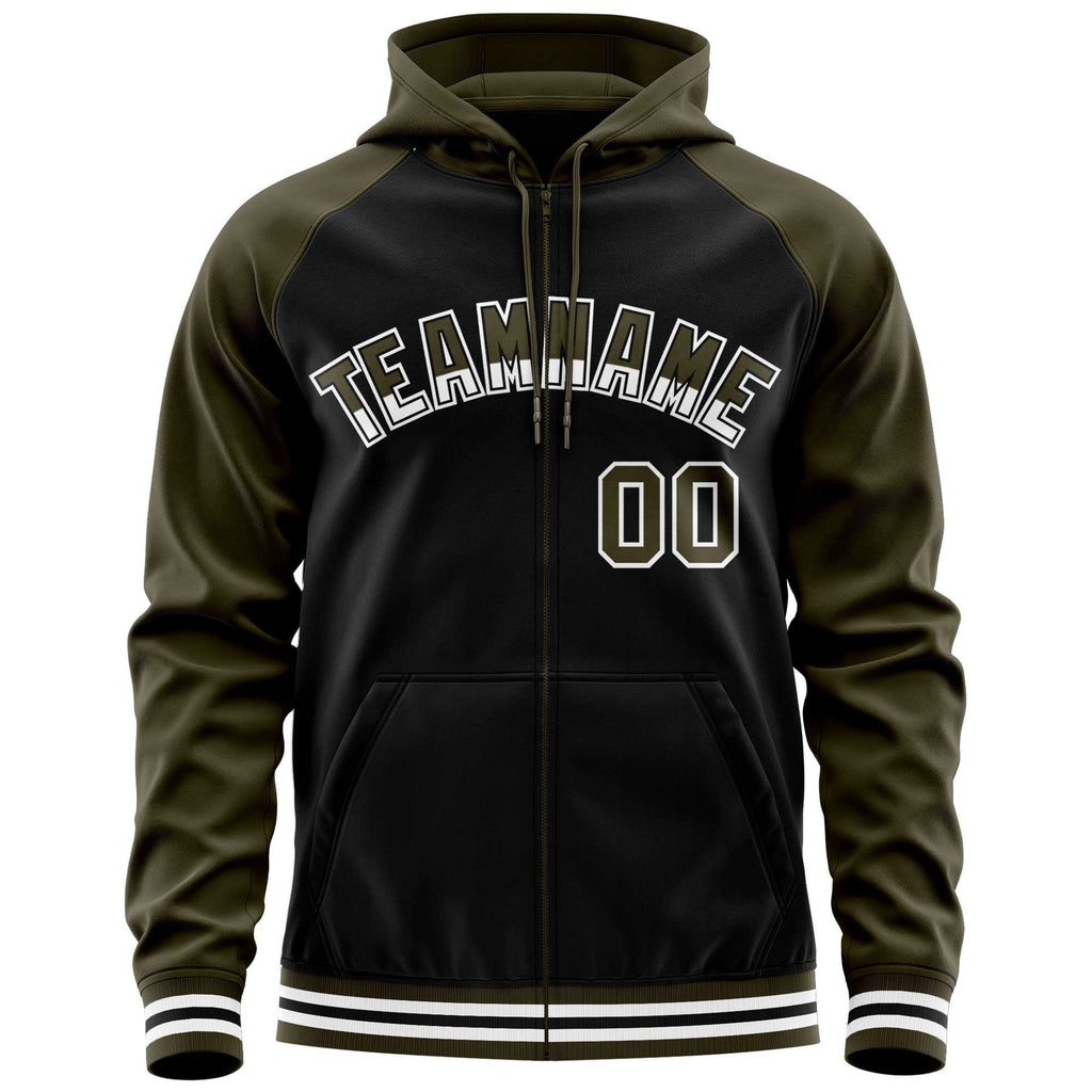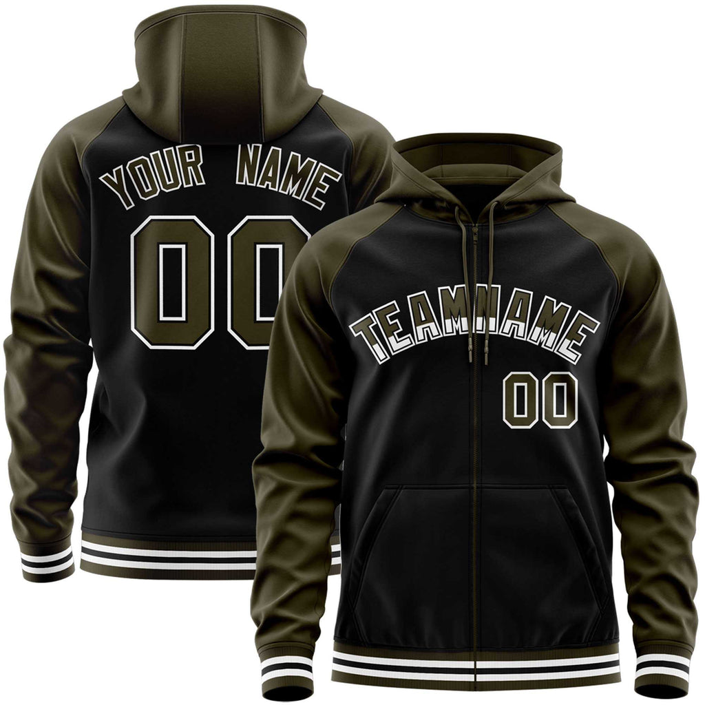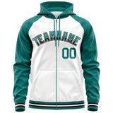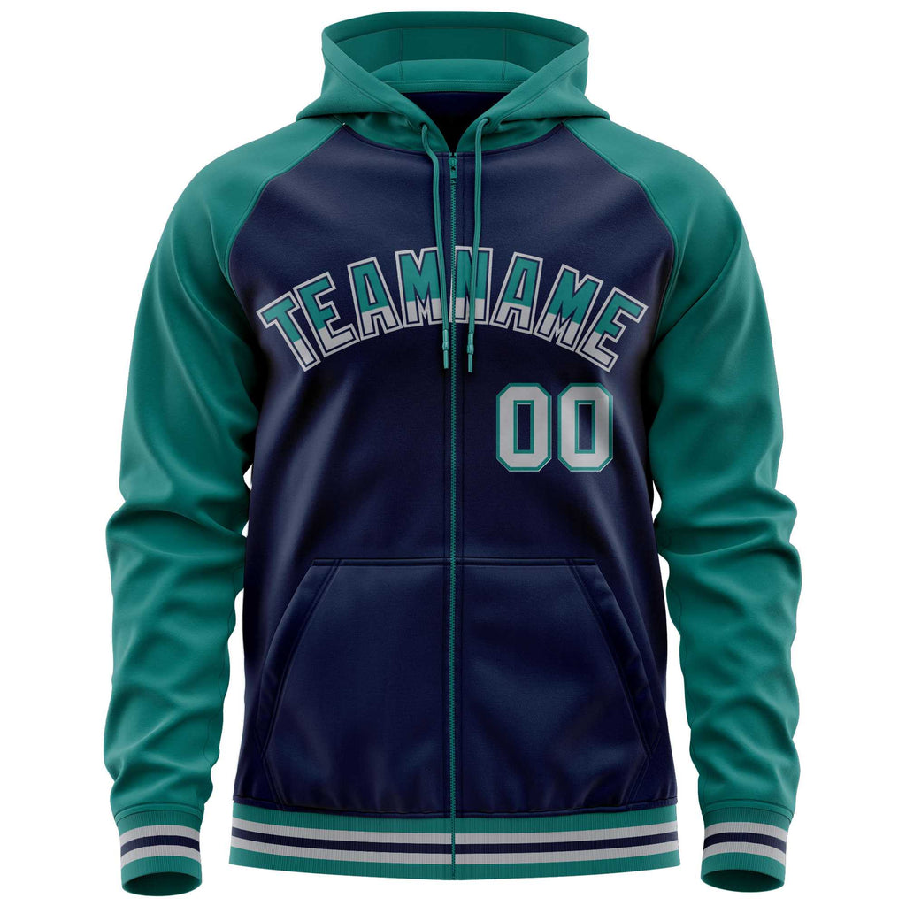 Custom Stitched Your Team Logo and Number Raglan Sleeves Sports Full-Zip Sweatshirt Hoodie For Adult Youth