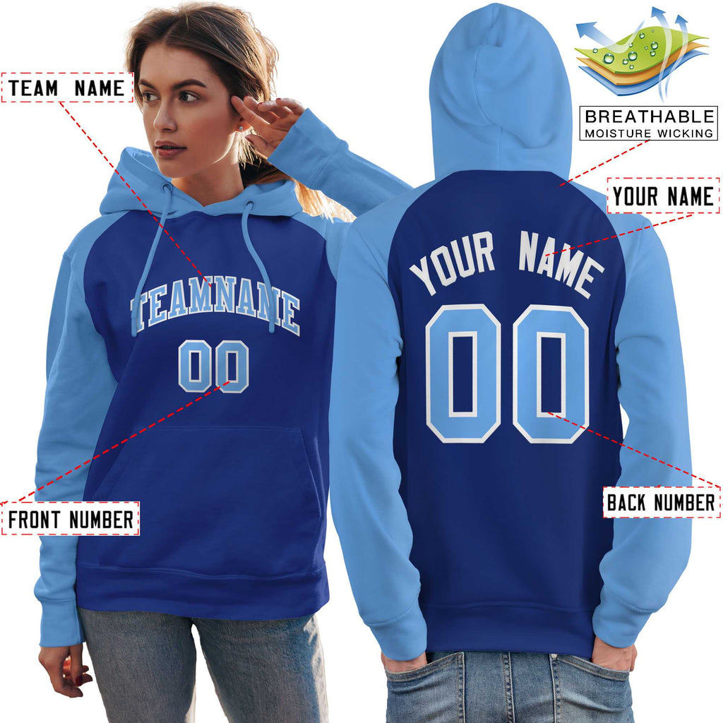 Custom Stitched Your Team Logo and Number Raglan Sleeves Sports Pullover Sweatshirt Hoodie For Women