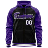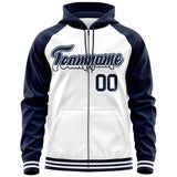 Custom Tailor Made Full-Zip Raglan Sleeves Hoodie Sportswear For All Age Stitched Team Name Number