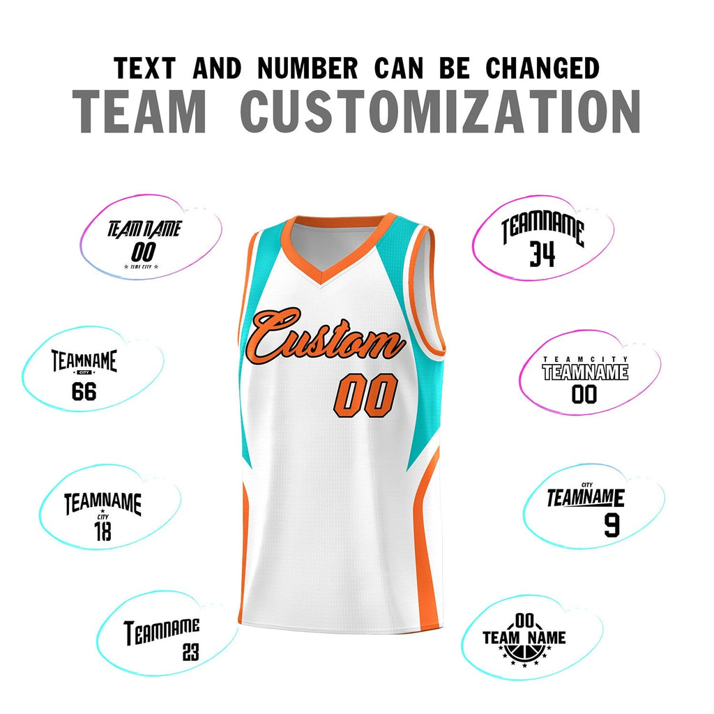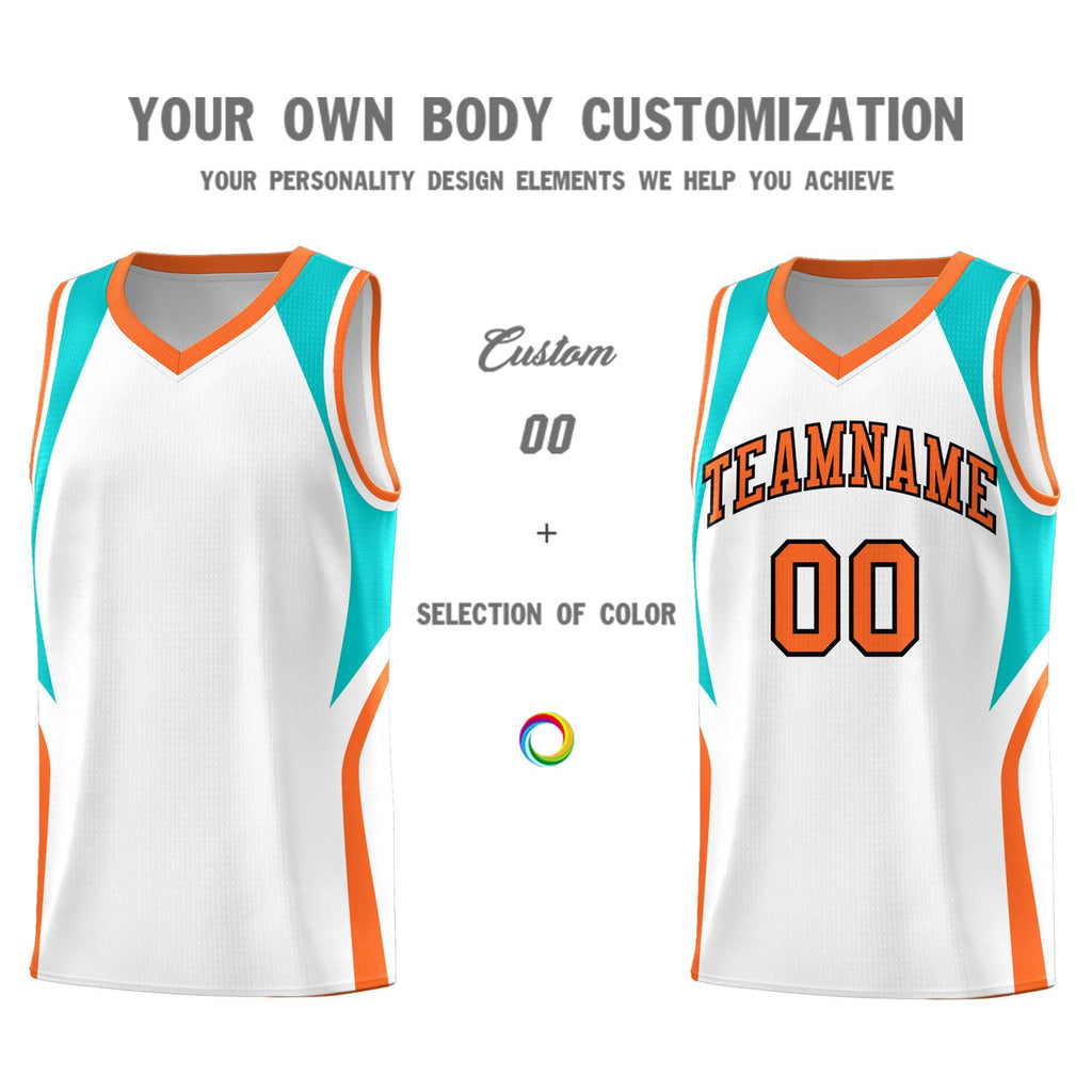 Custom White Aqua and Orange Color Block Sports Uniform Basketball Jersey