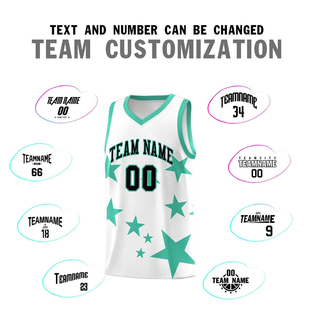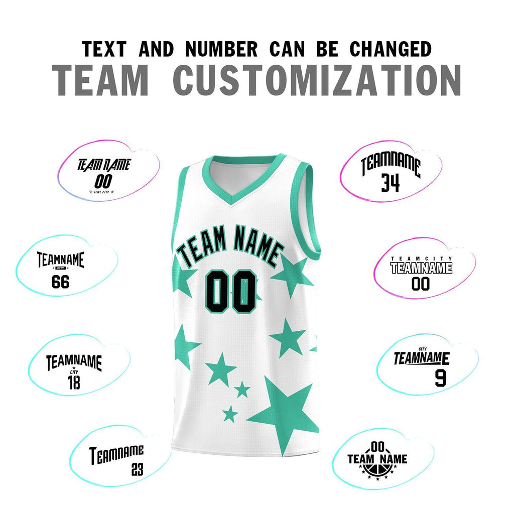 Custom White Bright Green Graffiti Pattern Star Print Basketball Jersey Sets