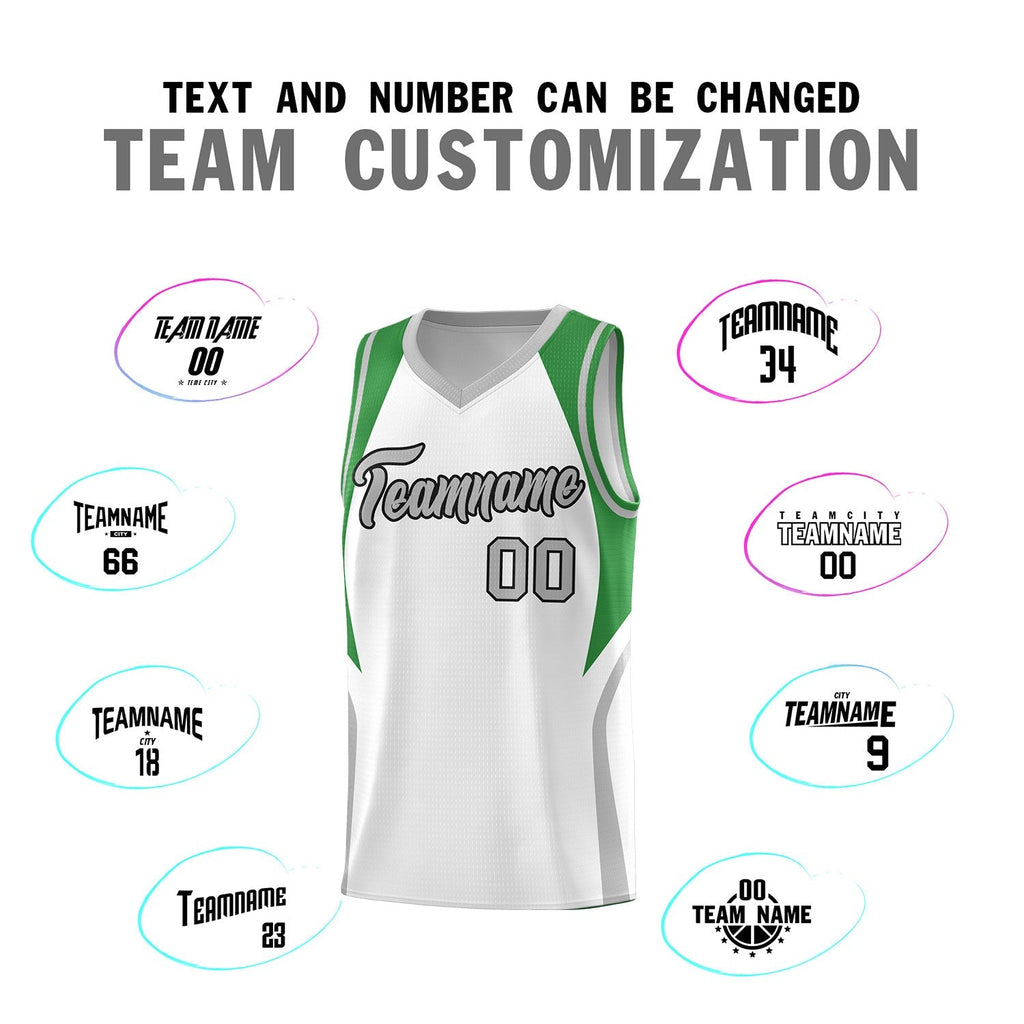 Custom White Green and Gray Color Block Sports Uniform Basketball Jersey