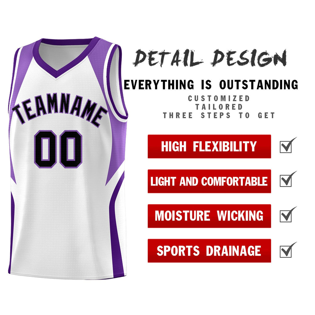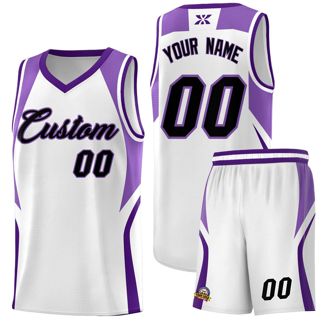 Custom White Light Purple and Purple Color Block Sports Uniform Basketball Jersey