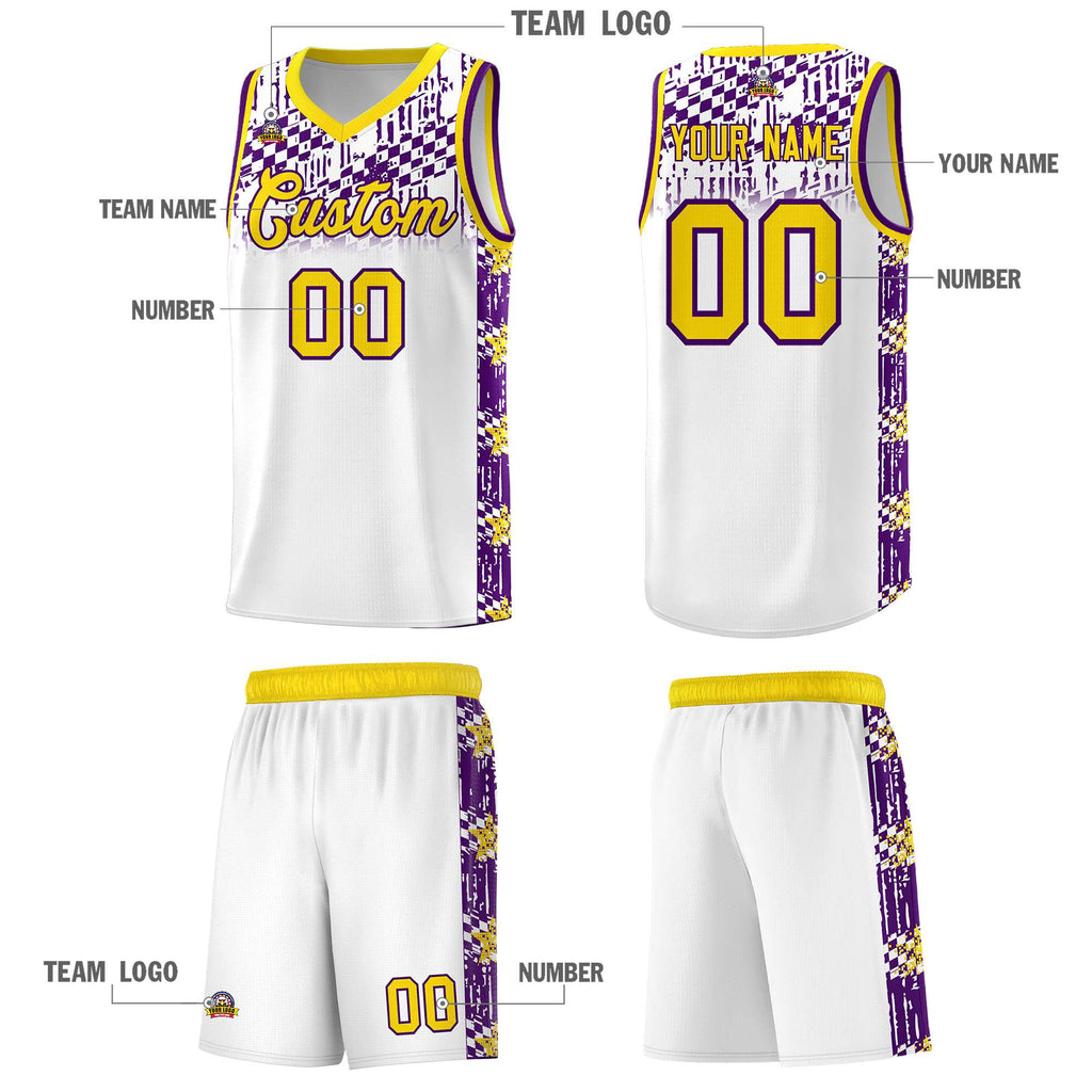 Custom White Mosaic Stars Pattern Sports Uniform Basketball Jersey