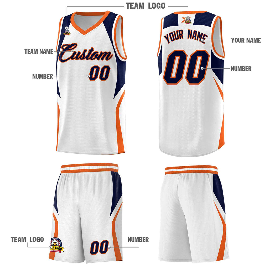 Custom White Navy and Orange Color Block Sports Uniform Basketball Jersey