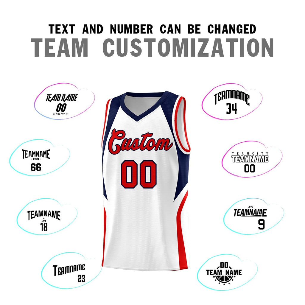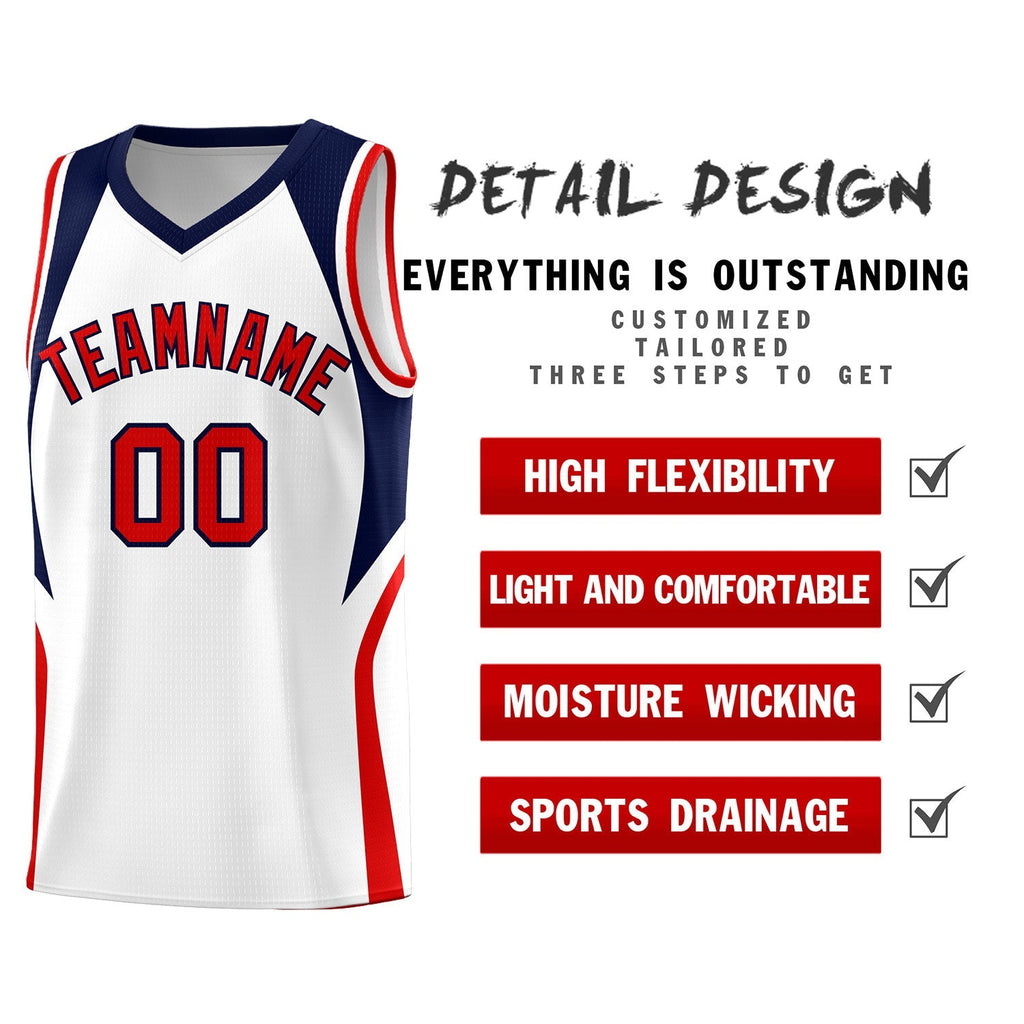 Custom White Navy and Red Color Block Sports Uniform Basketball Jersey