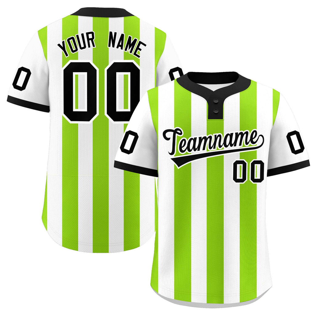 Custom White Neon Green Stripe Fashion Authentic Two-Button Baseball Jersey