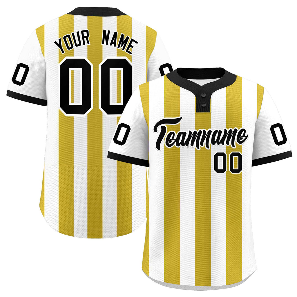 Custom White Old Gold Stripe Fashion Authentic Two-Button Baseball Jersey