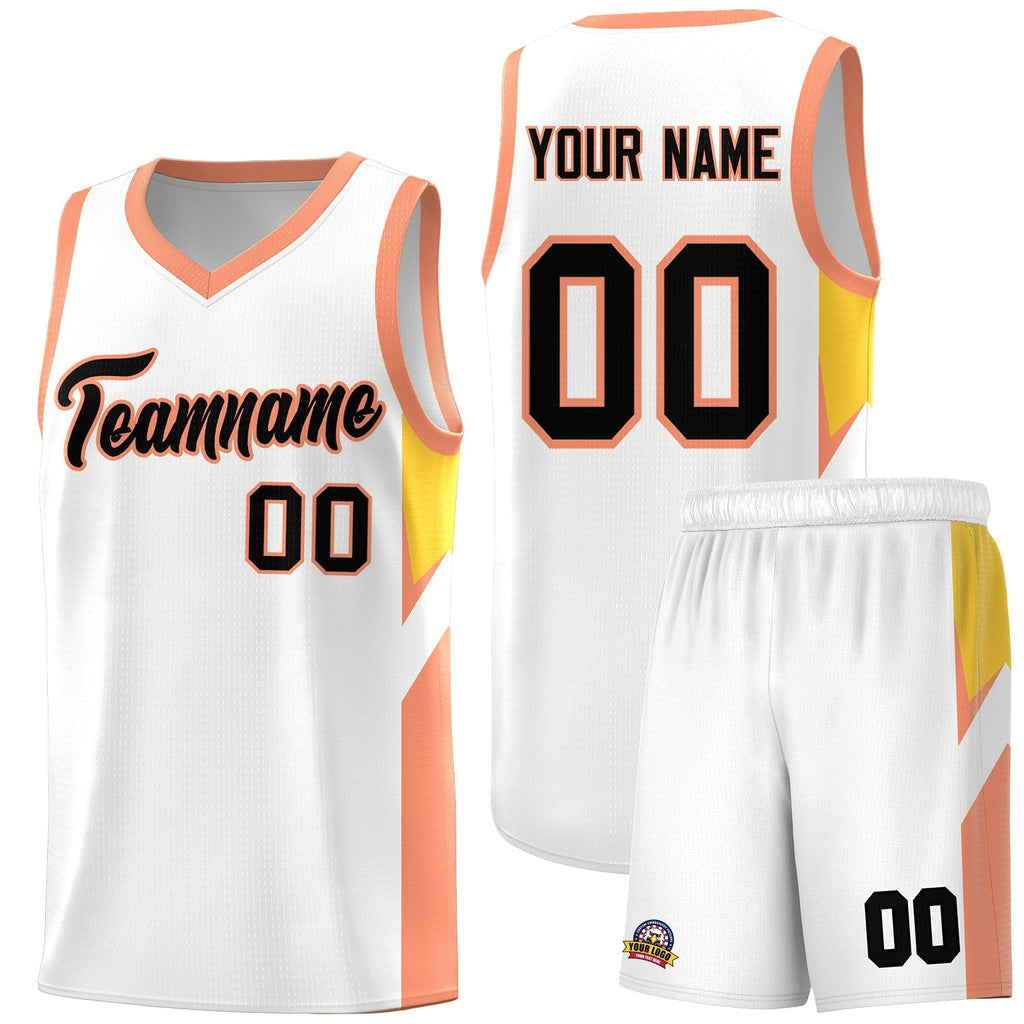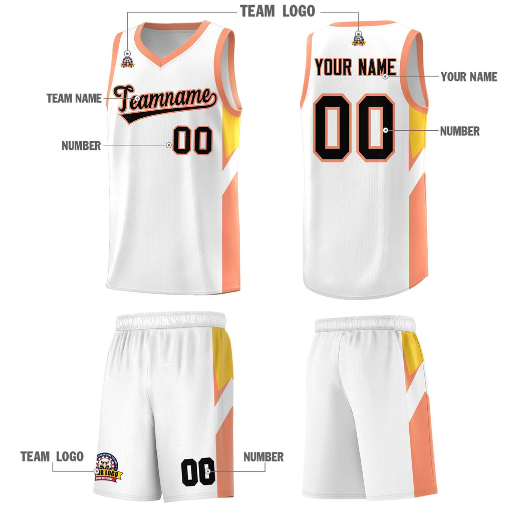 Custom White Orange Side Design Sets Sports Uniform Basketball Jersey