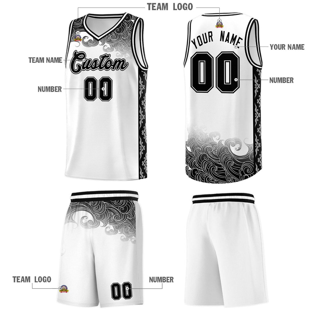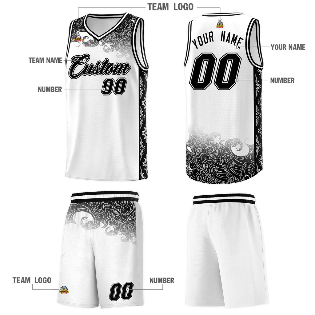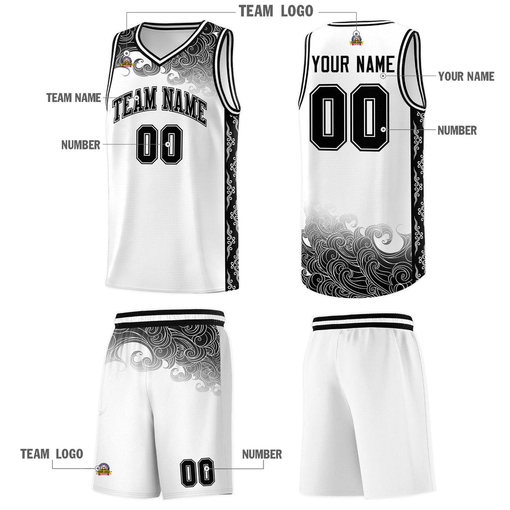 Custom White Personalized Cloud Pattern Sports Sets Uniform Basketball Jersey
