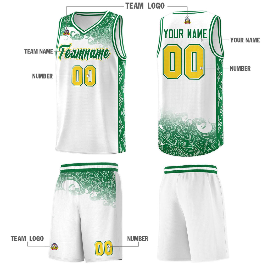 Custom White Personalized Cloud Pattern Sports Sets Uniform Basketball Jersey