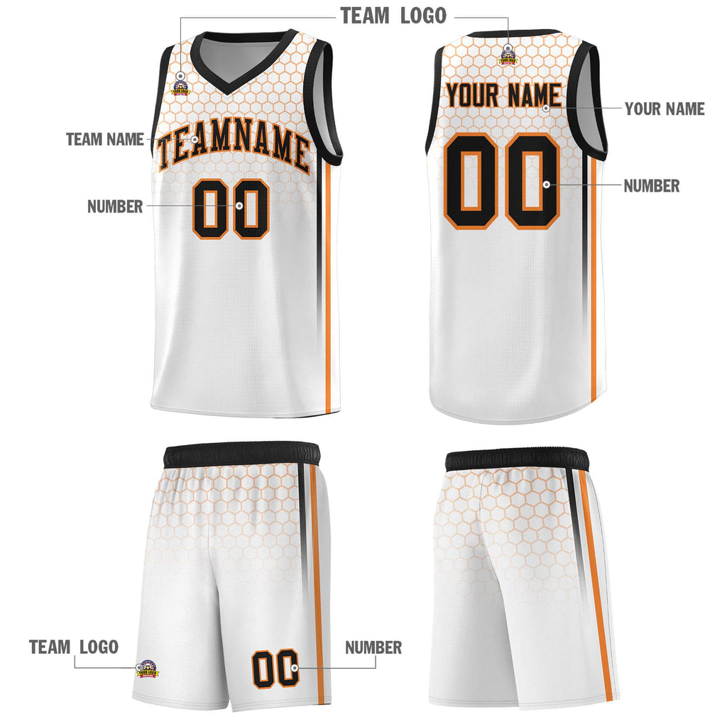 Custom White Personalized Honeycomb Pattern Sports Uniform Basketball Jersey