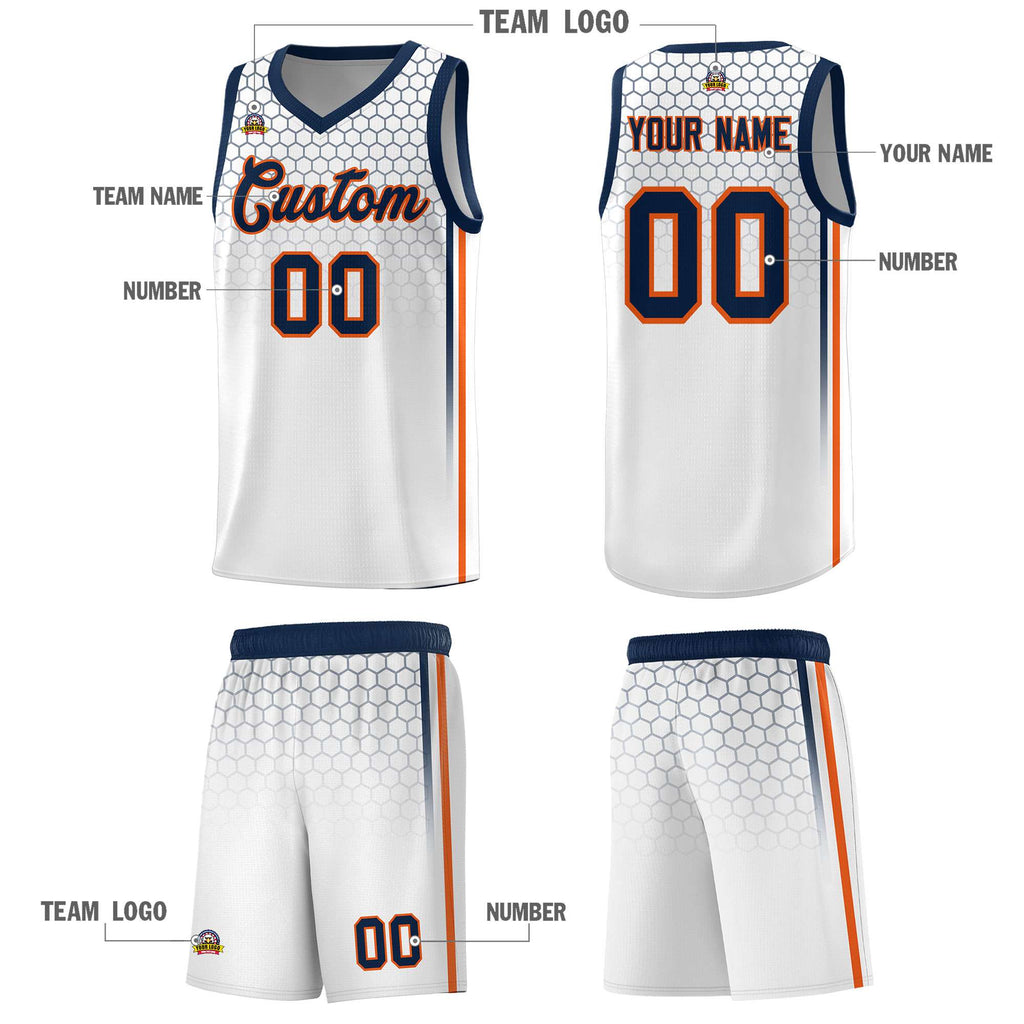 Custom White Personalized Honeycomb Pattern Sports Uniform Basketball Jersey