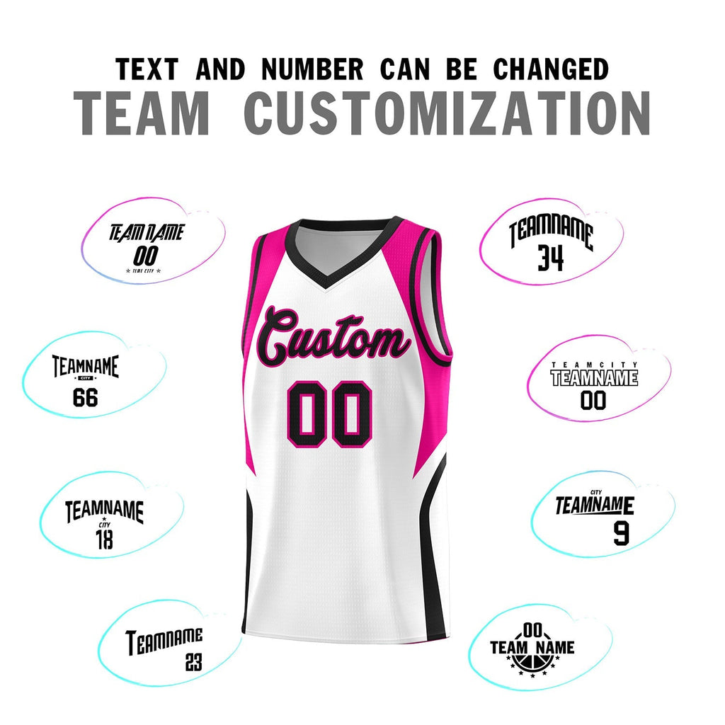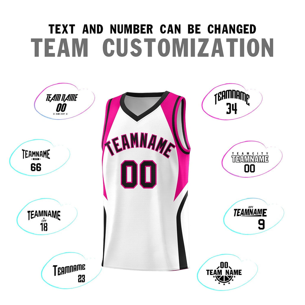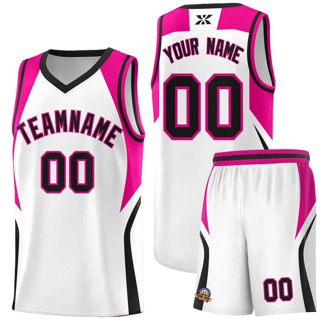 Custom White Pink and Black Color Block Sports Uniform Basketball Jersey