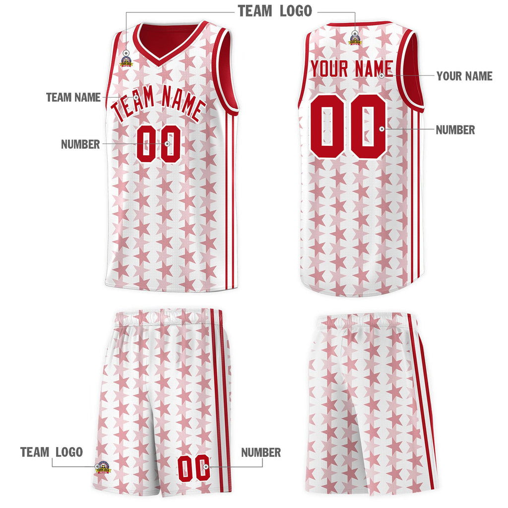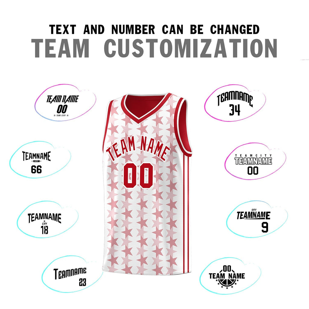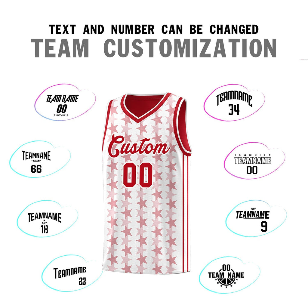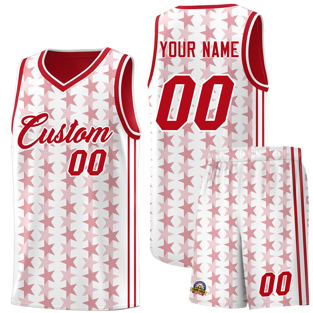 Custom White Red Star Graffiti Pattern Sets Sports Uniform Basketball Jersey