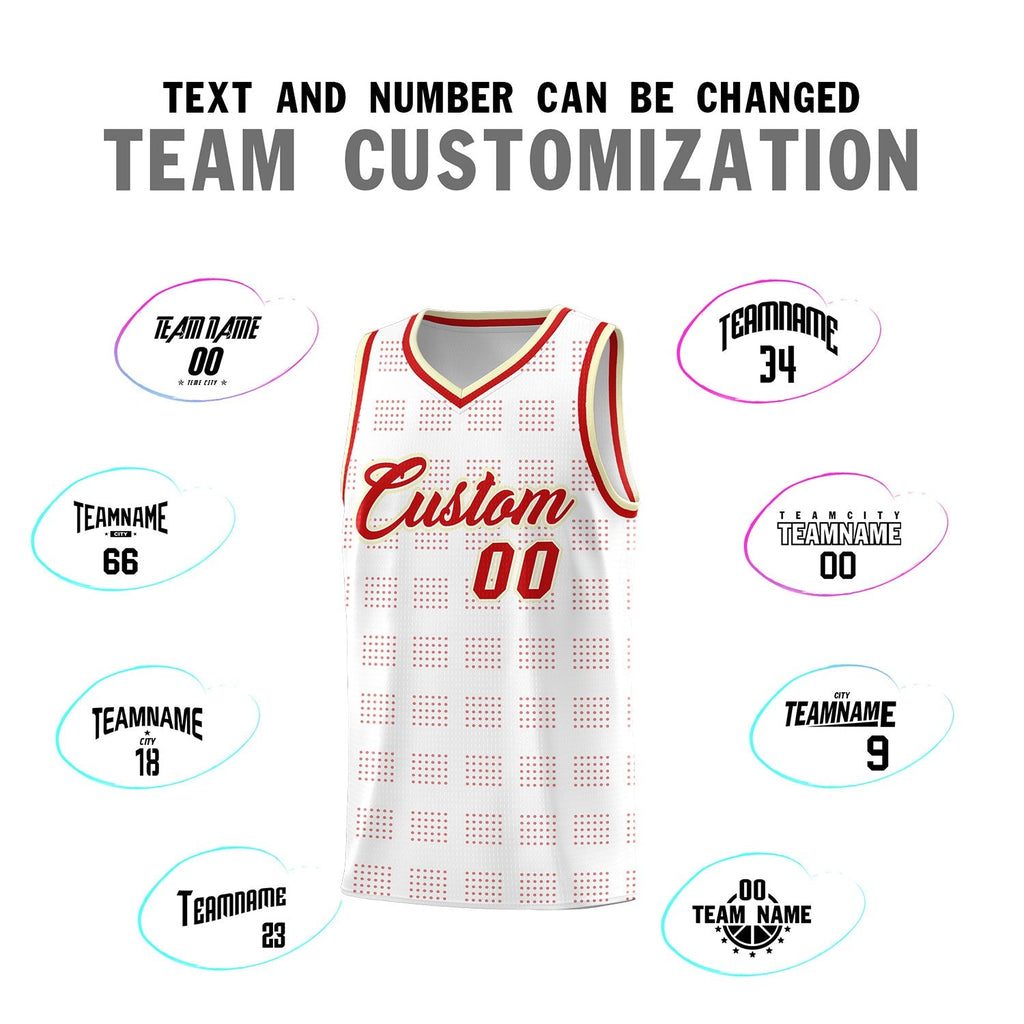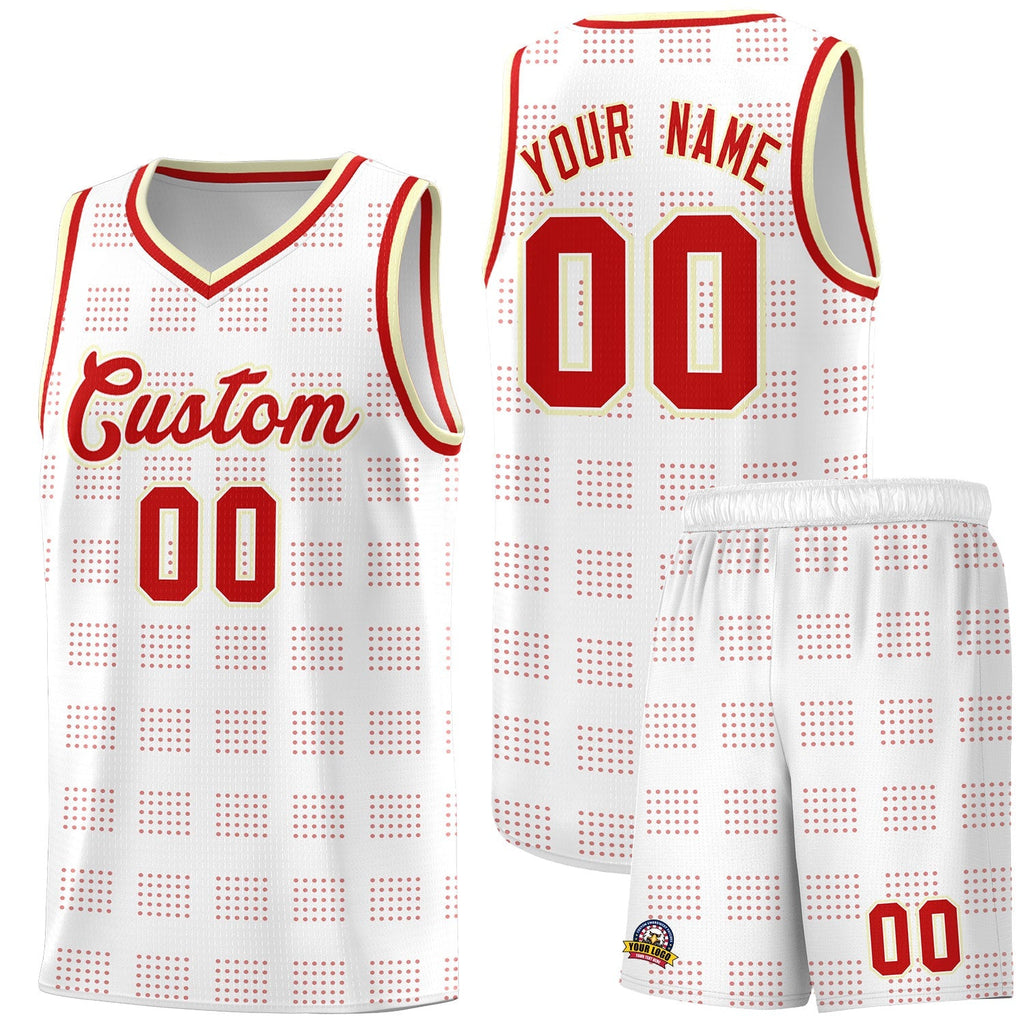 Custom White Red Trailblazer Dot Pattern Sports Uniform Basketball Jersey