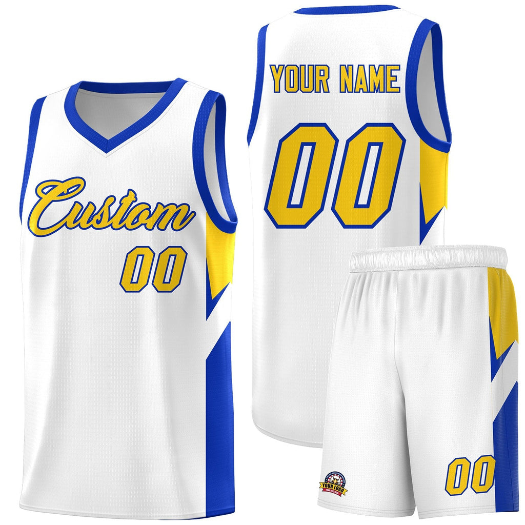 Custom White Royal Side Design Sets Sports Uniform Basketball Jersey