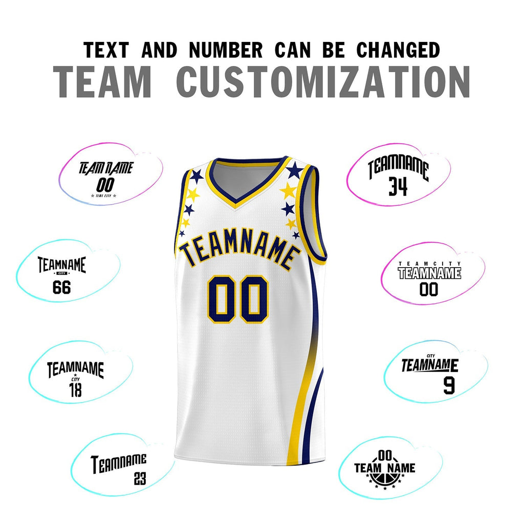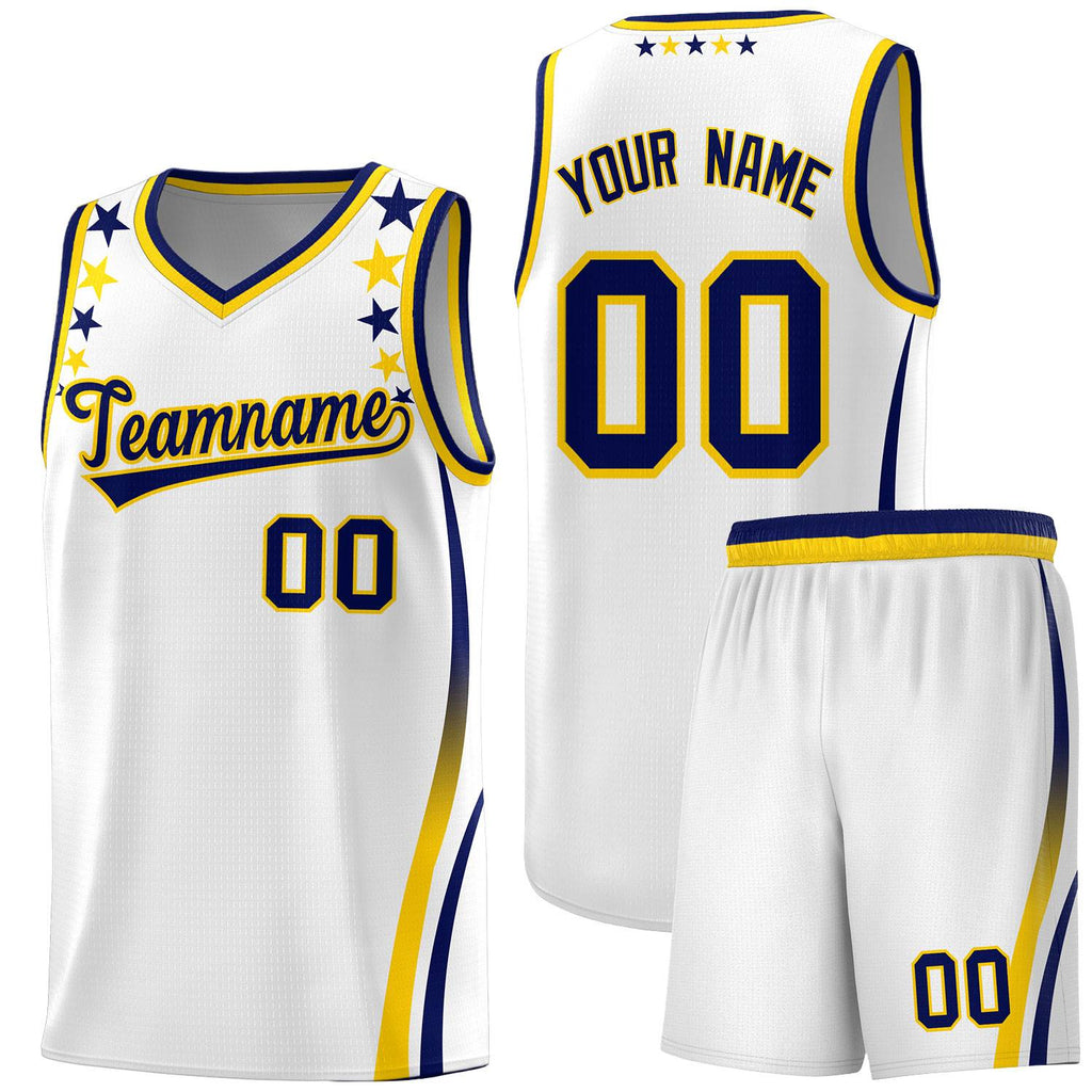 Custom White Shoulders Star Pattern Side Color Block Sports Uniform Basketball Jersey