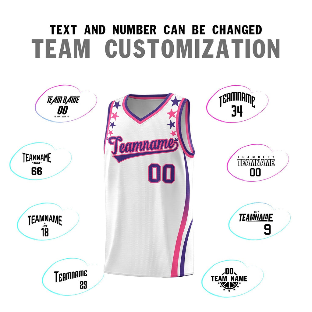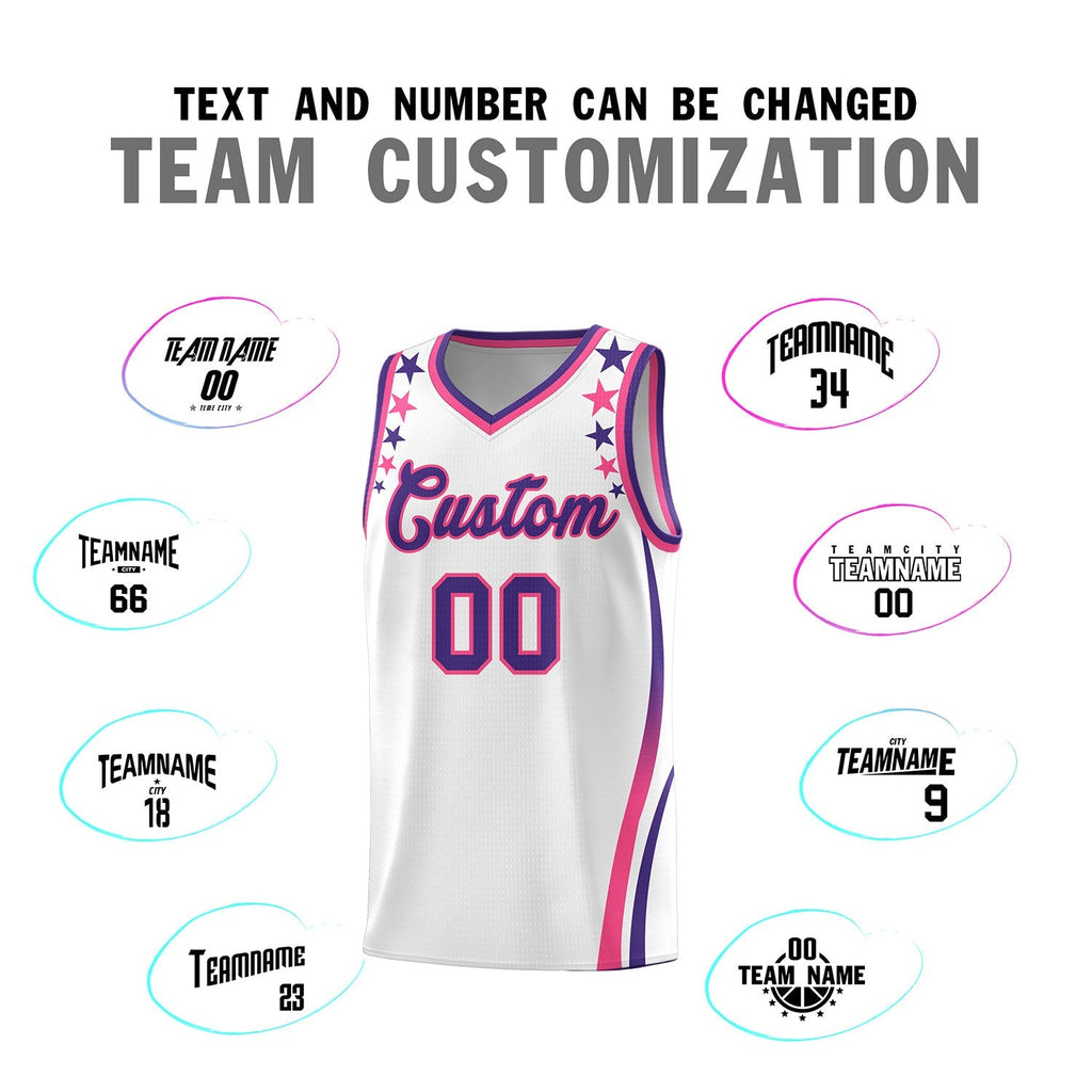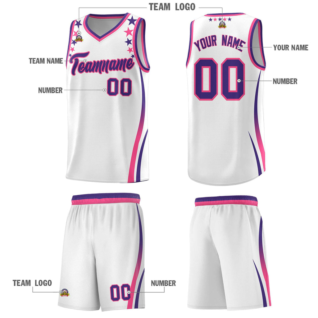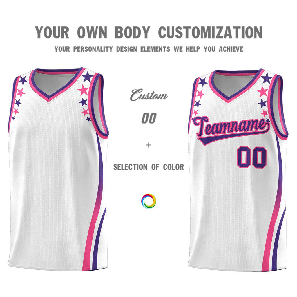 Custom White Shoulders Star Pattern Side Color Block Sports Uniform Basketball Jersey