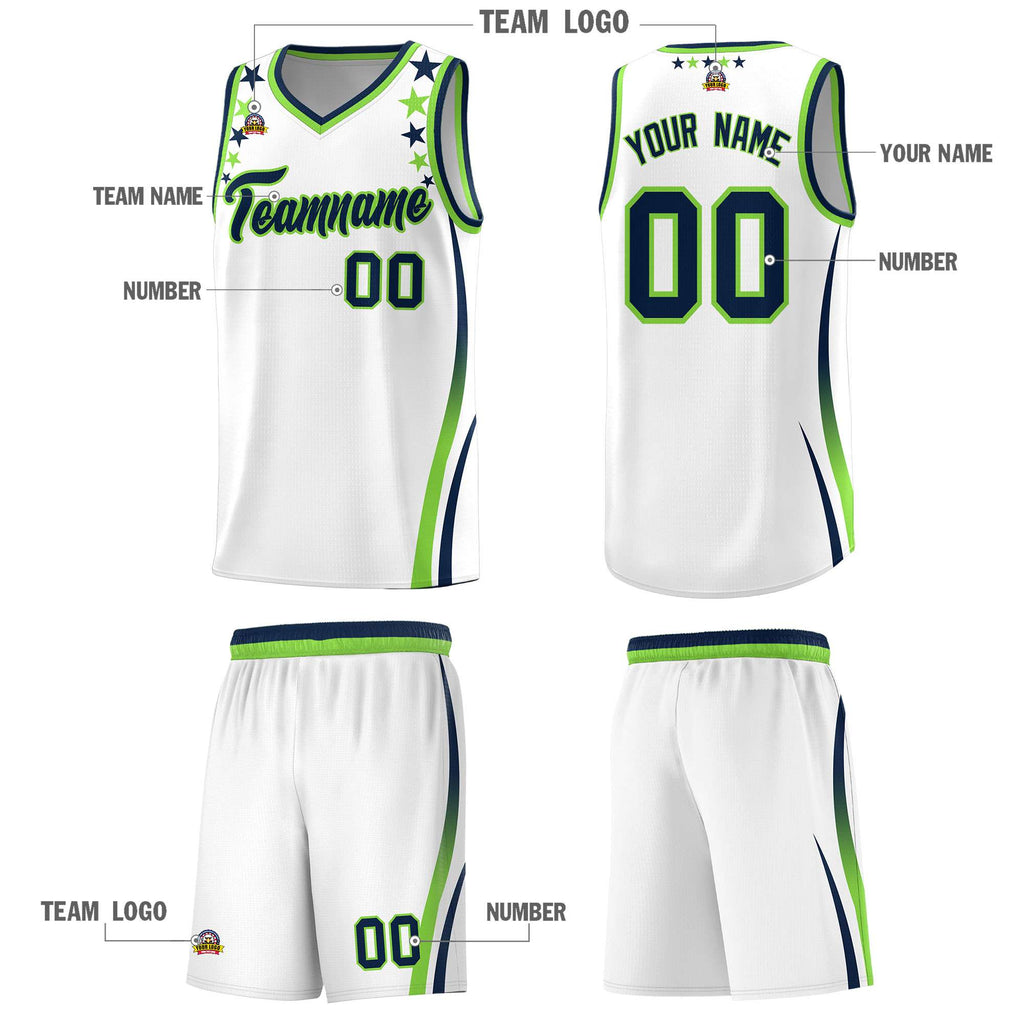 Custom White Shoulders Star Pattern Side Color Block Sports Uniform Basketball Jersey