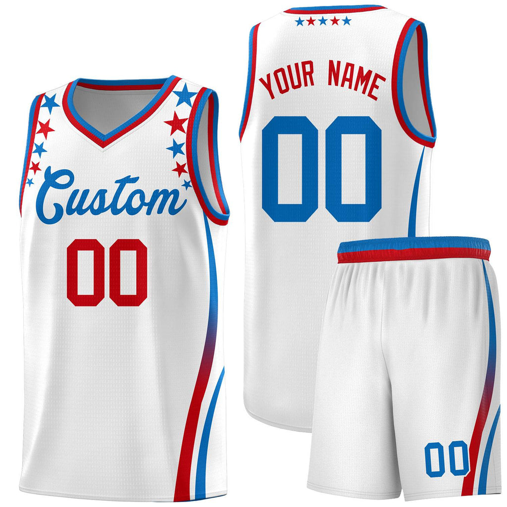 Custom White Shoulders Star Pattern Side Color Block Sports Uniform Basketball Jersey