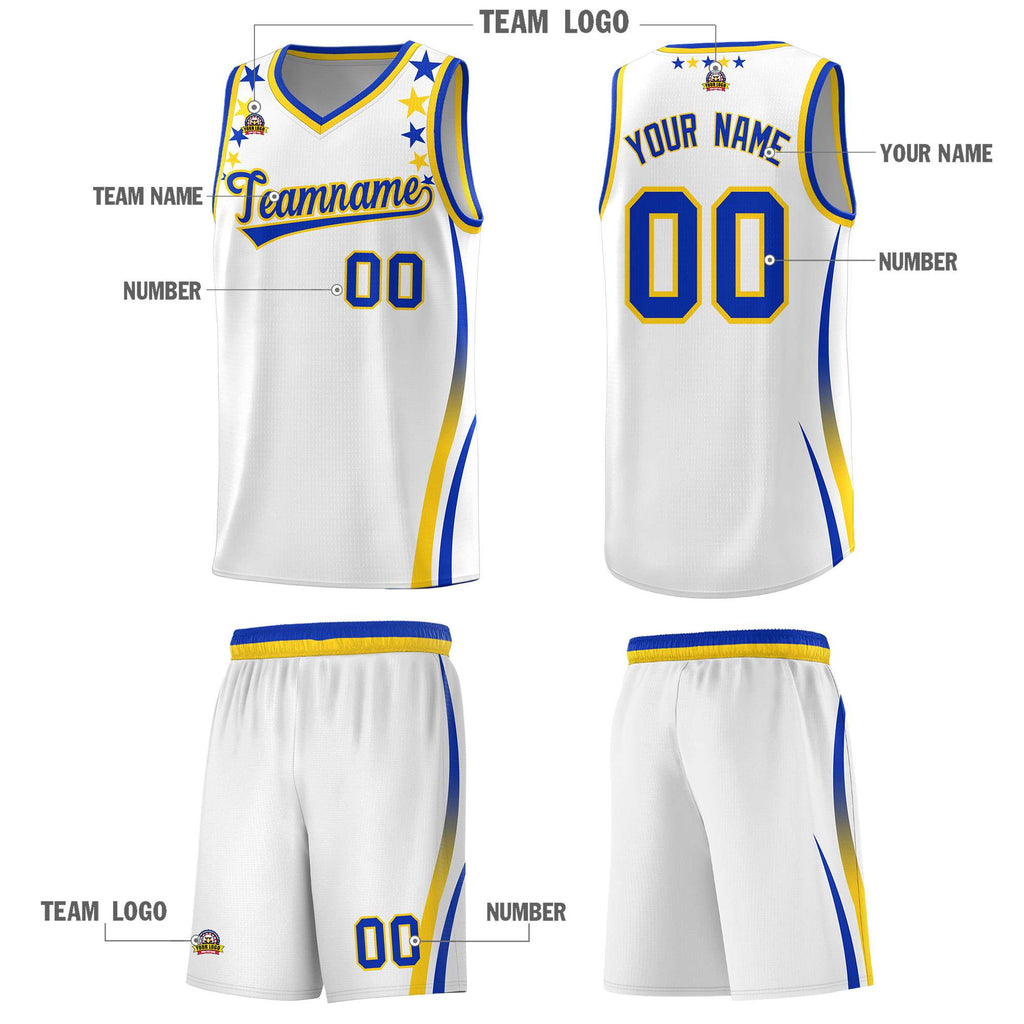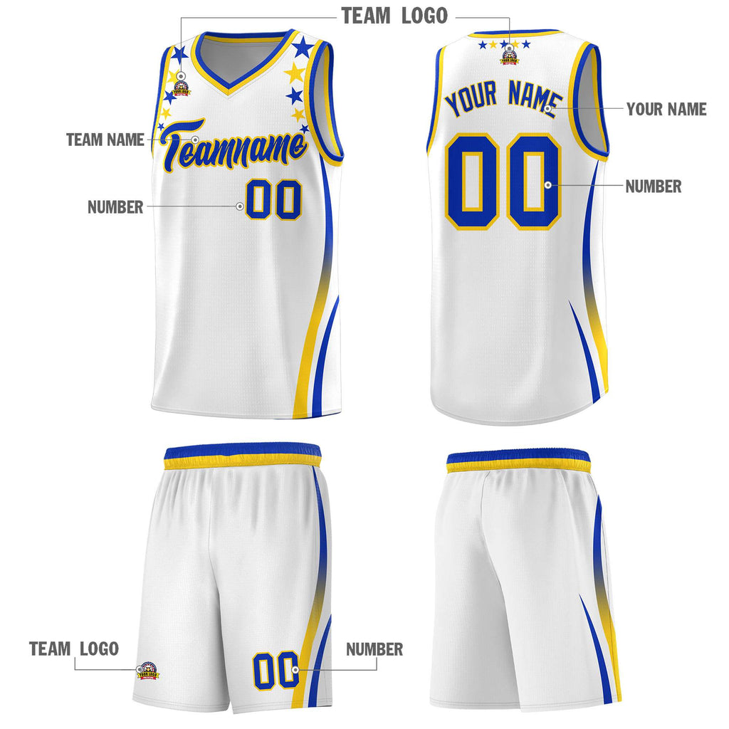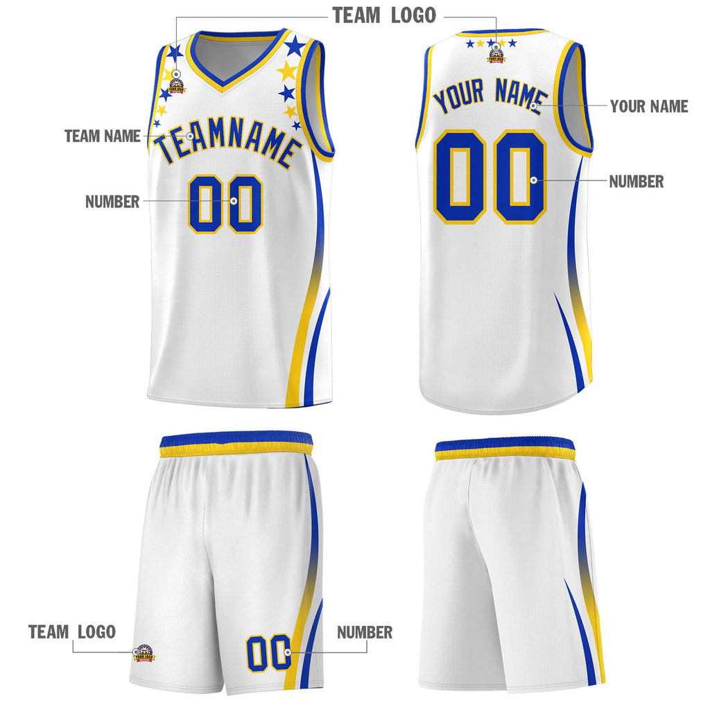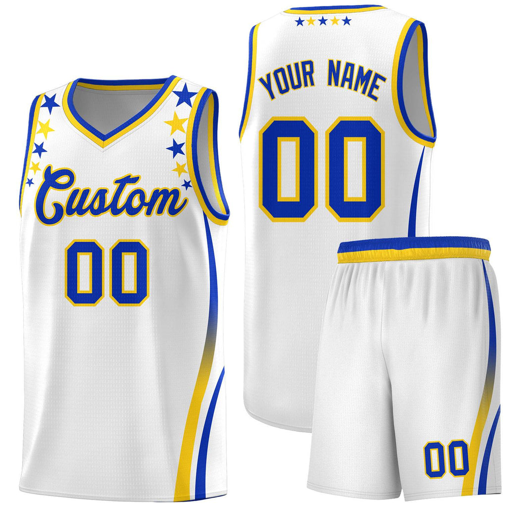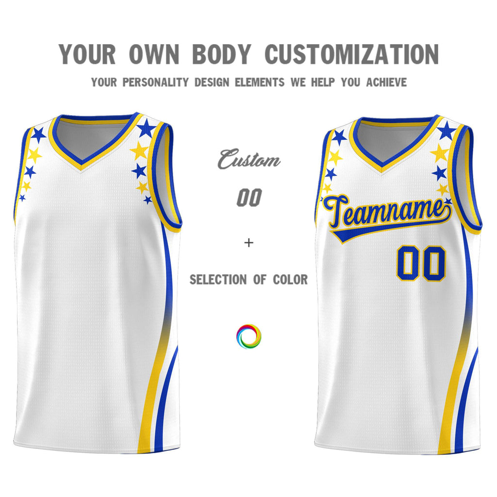 Custom White Shoulders Star Pattern Side Color Block Sports Uniform Basketball Jersey