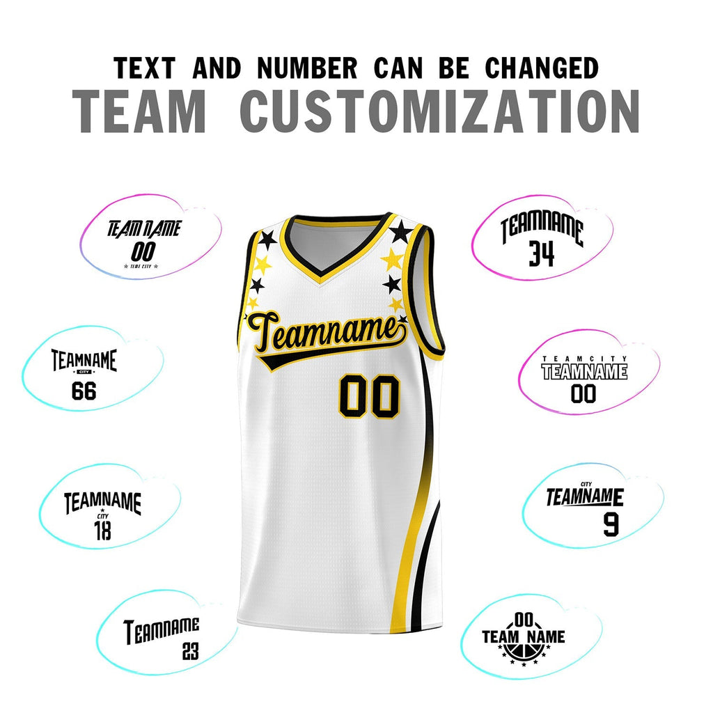 Custom White Shoulders Star Pattern Side Color Block Sports Uniform Basketball Jersey