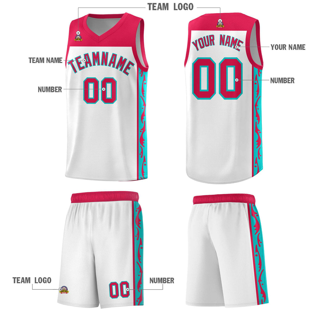 Custom White Side Pattern Sports Uniform Basketball Jersey