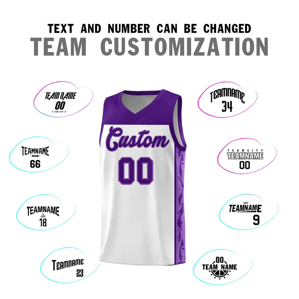 Custom White Side Pattern Sports Uniform Basketball Jersey