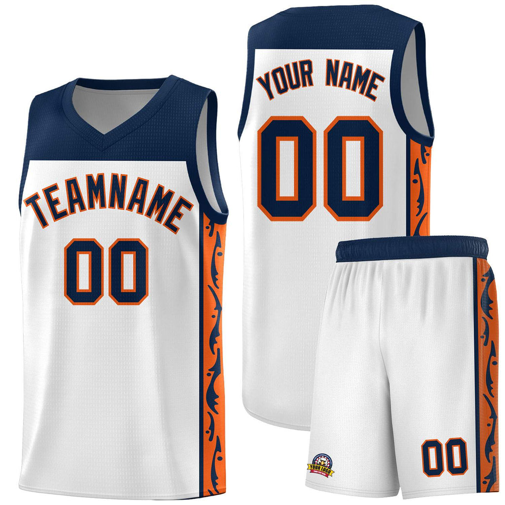 Custom White Side Pattern Sports Uniform Basketball Jersey