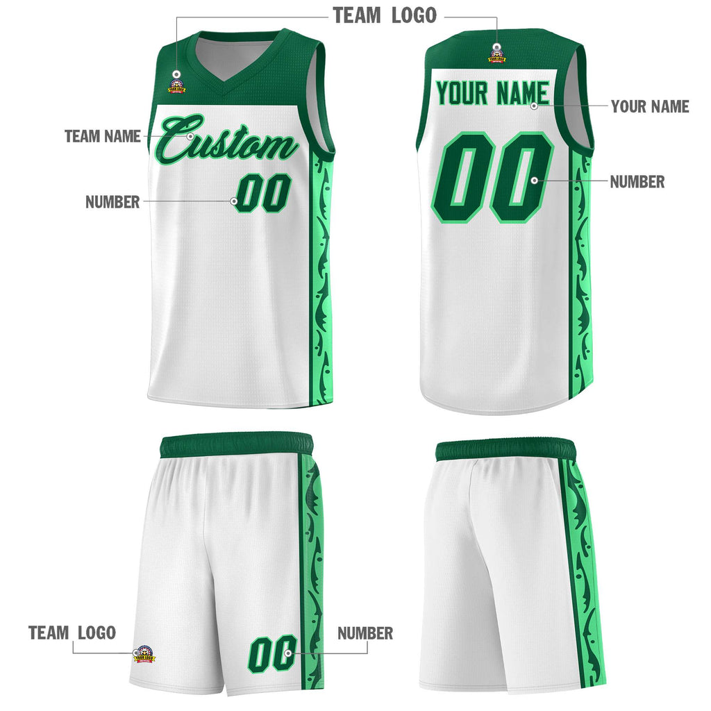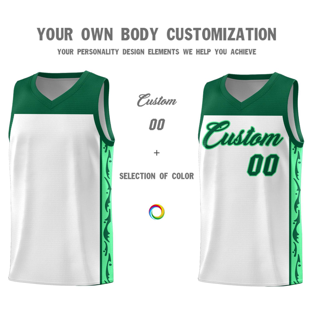 Custom White Side Pattern Sports Uniform Basketball Jersey