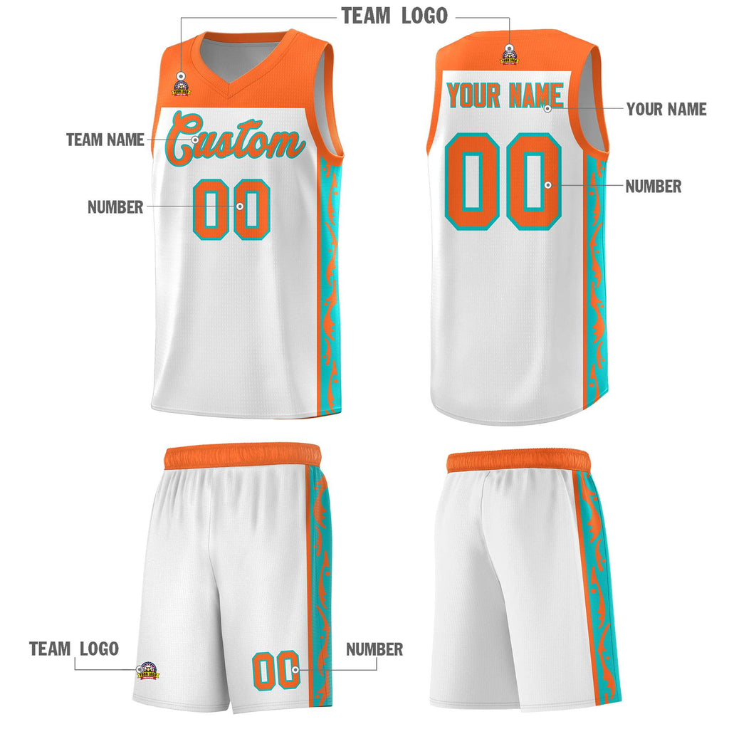 Custom White Side Pattern Sports Uniform Basketball Jersey
