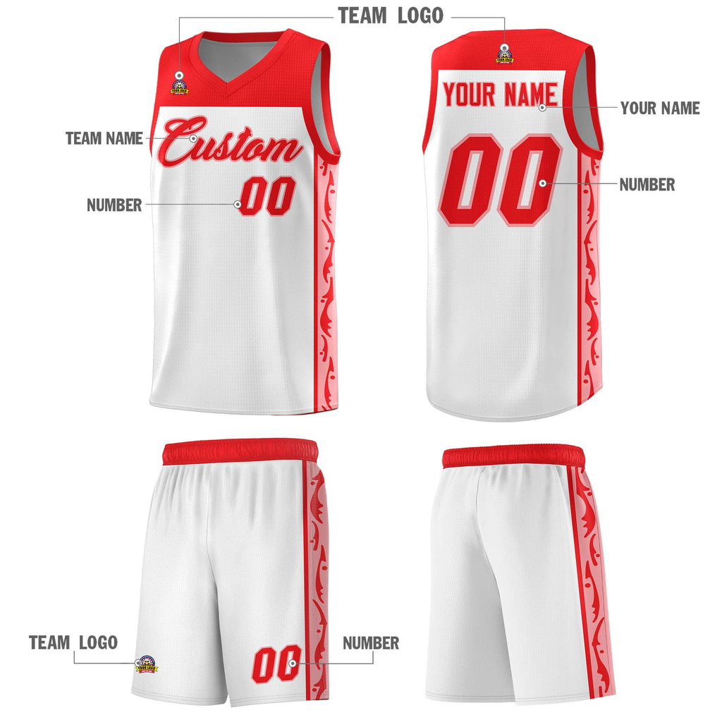 Custom White Side Pattern Sports Uniform Basketball Jersey