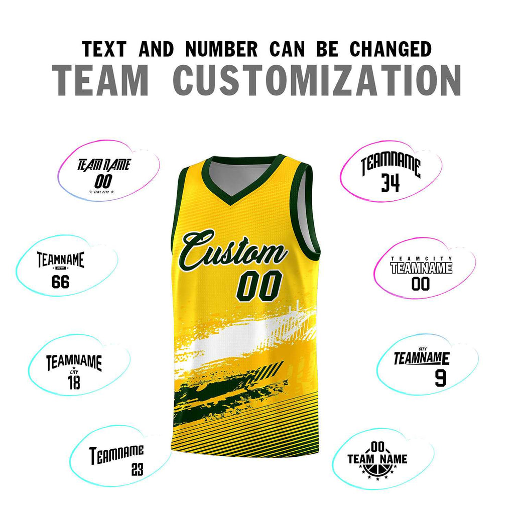 Custom Yellow White and Green Graffiti Pattern Sports Uniform Basketball Jersey